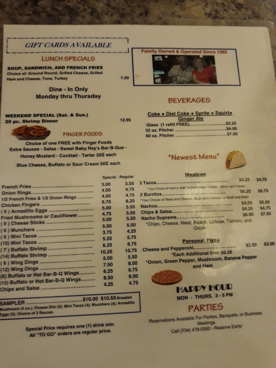 Many guests stop in for lunch specials featuring soups and sandwiches, ideal for a midday break or a casual catch-up. In the evenings, the focus shifts to satisfying bites such as chicken fingers, onion rings, and personal pizzas, perfect for enjoying while catching a game or unwinding with friends. The menu’s approachable variety also complements the laid-back, friendly atmosphere found throughout the day and into trivia night and weekends.